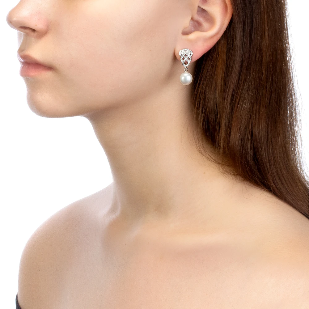 Серьги из серебра c белыми речными жемчужинами 9,5-10 мм, (3757)