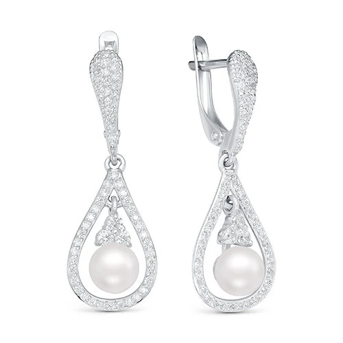Серьги из серебра c белыми речными жемчужинами 7 мм, (2632)