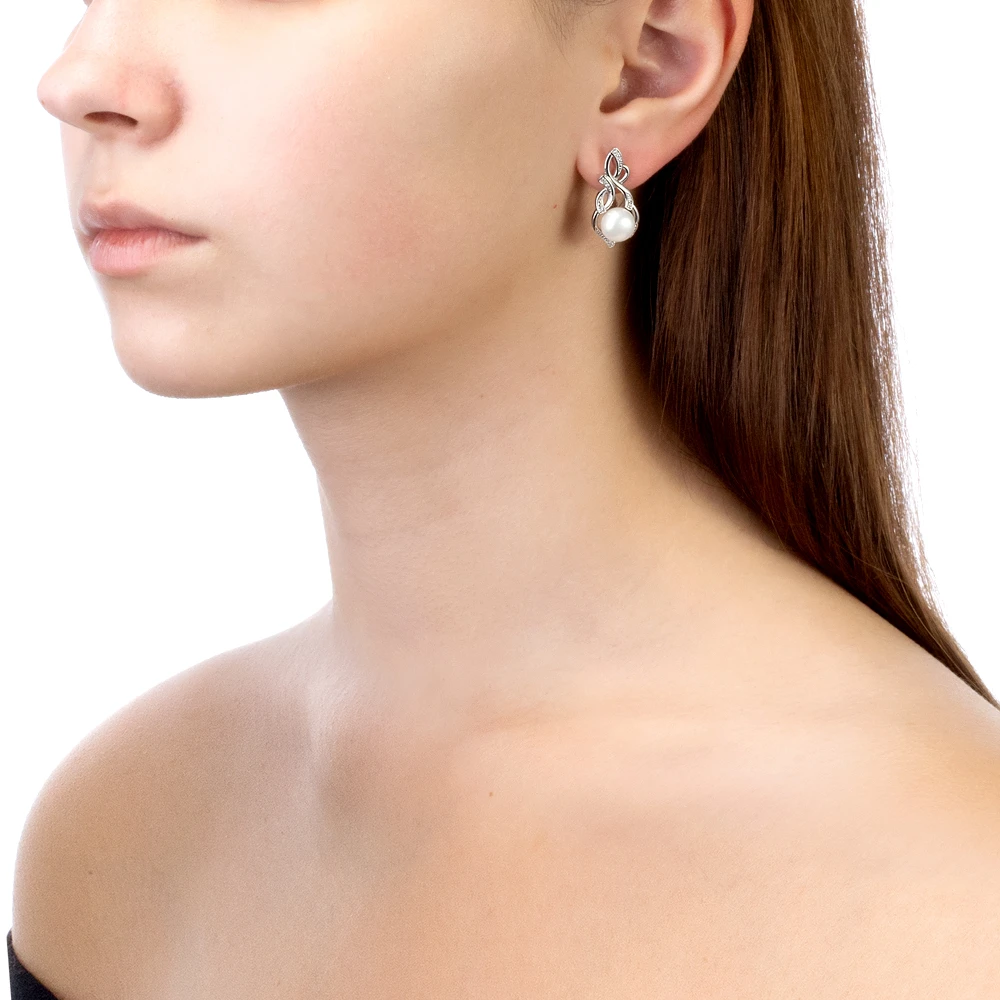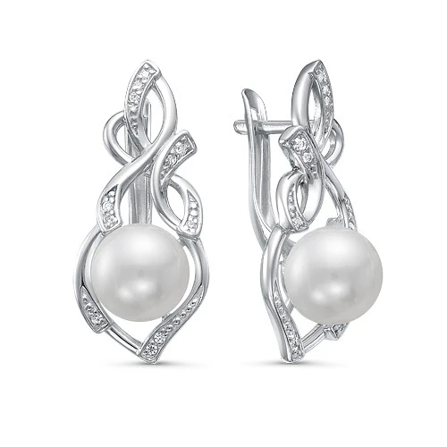 Серьги из серебра c белыми речными жемчужинами 8-8,5 мм, (3095)