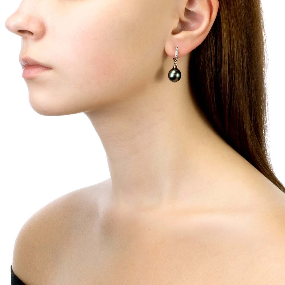 Серьги из серебра c черными морскими Таитянскими жемчужинами 9-9,5 мм, (3585)