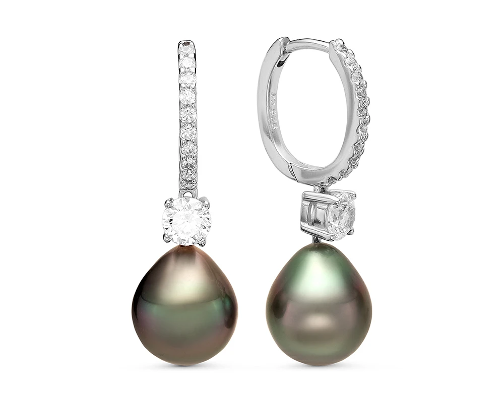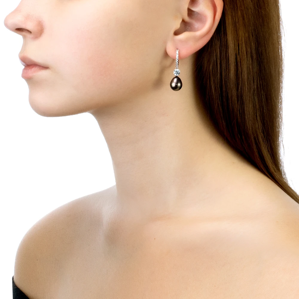 Серьги из серебра c черными морскими Таитянскими жемчужинами 10-10,5 мм, (3588)