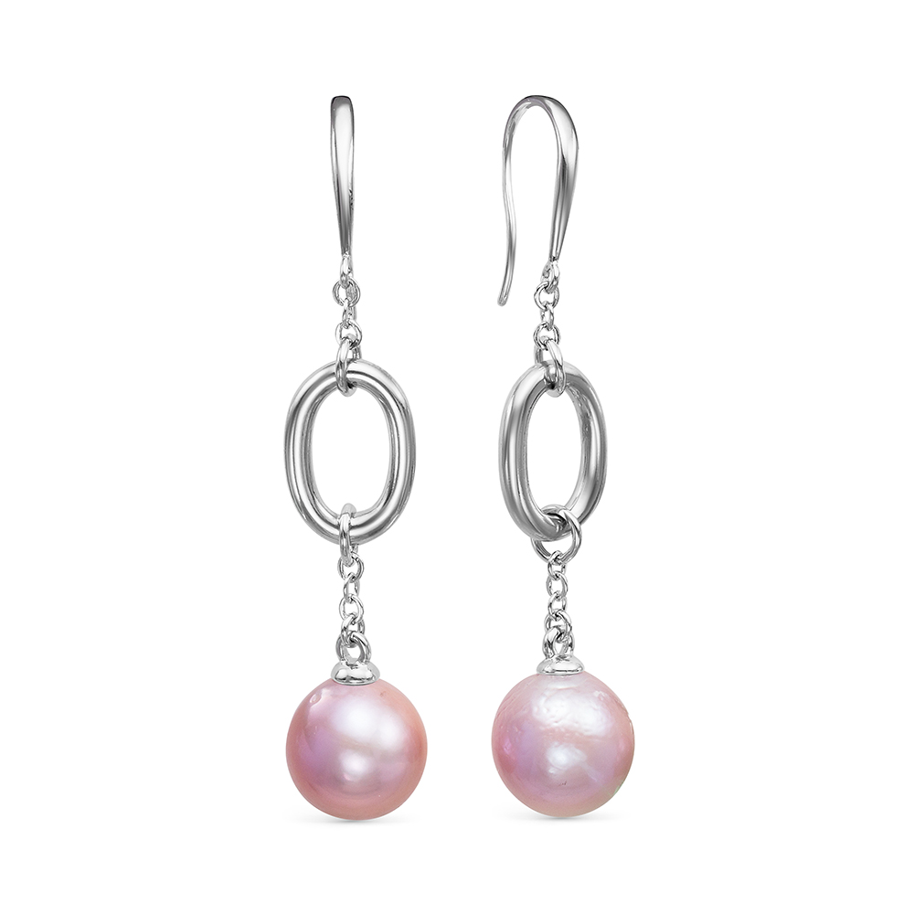Серьги из серебра c розовыми японскими речными жемчужинами 12,5-13 мм, (7294)