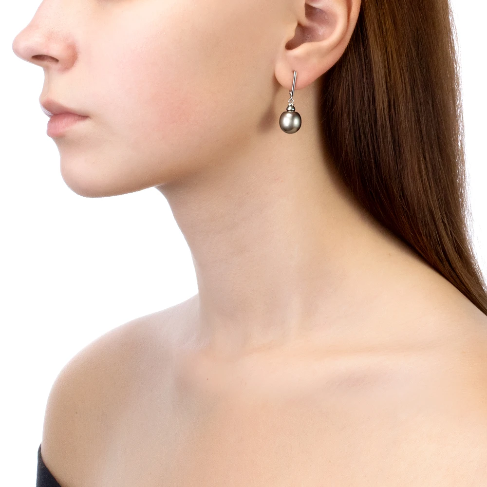 Серьги из серебра c черными морскими Таитянскими жемчужинами 10-11 мм, (4395)