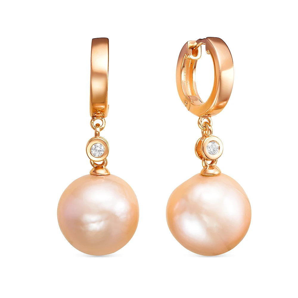 Серьги выполнены из серебра 925 пробы с золотым покрытием "красное золото". Серьги украшают жемчужины "Эдисон", размер жемчужин крупный, блеск очень яркий. Длина серег - 3,5 см.