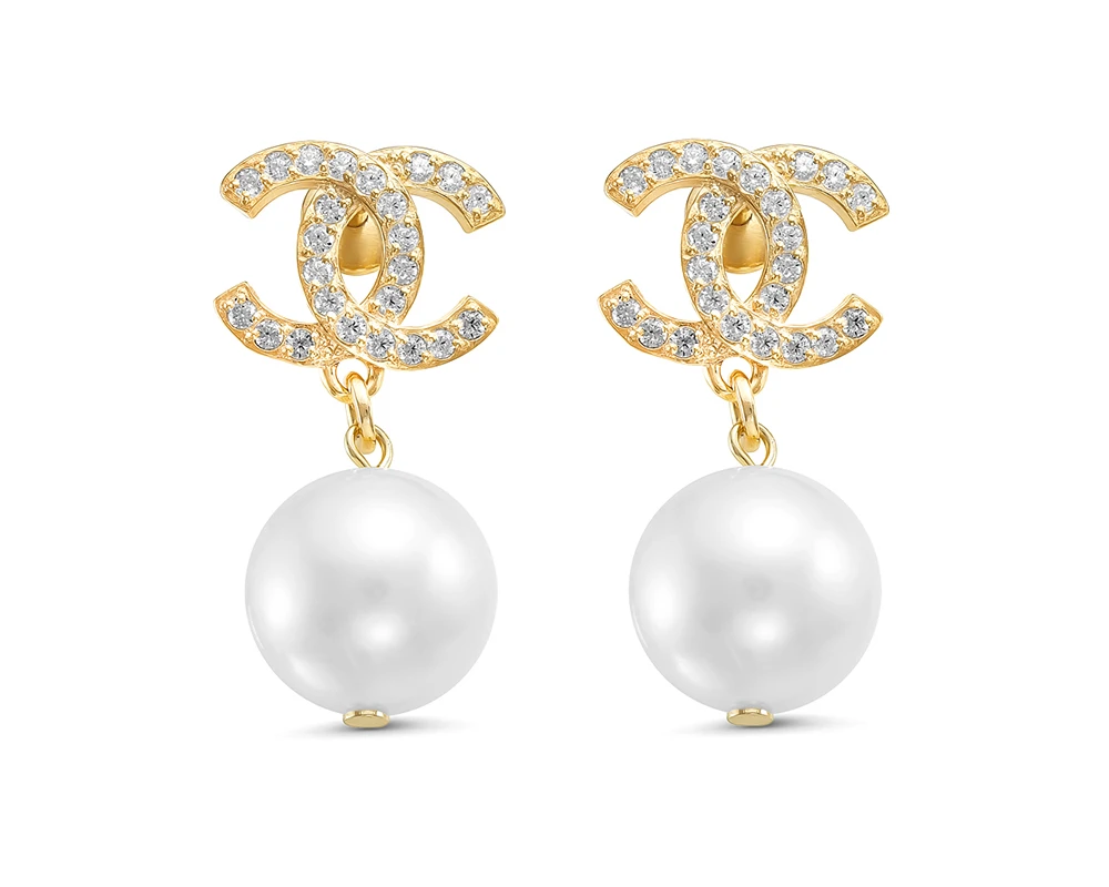Серьги выполнены из серебра 925 пробы с покрытием "желтое золото", украшены белыми жемчужинами пресной воды. Качество жемчужин среднее, на поверхности жемчуга есть природные повреждения.