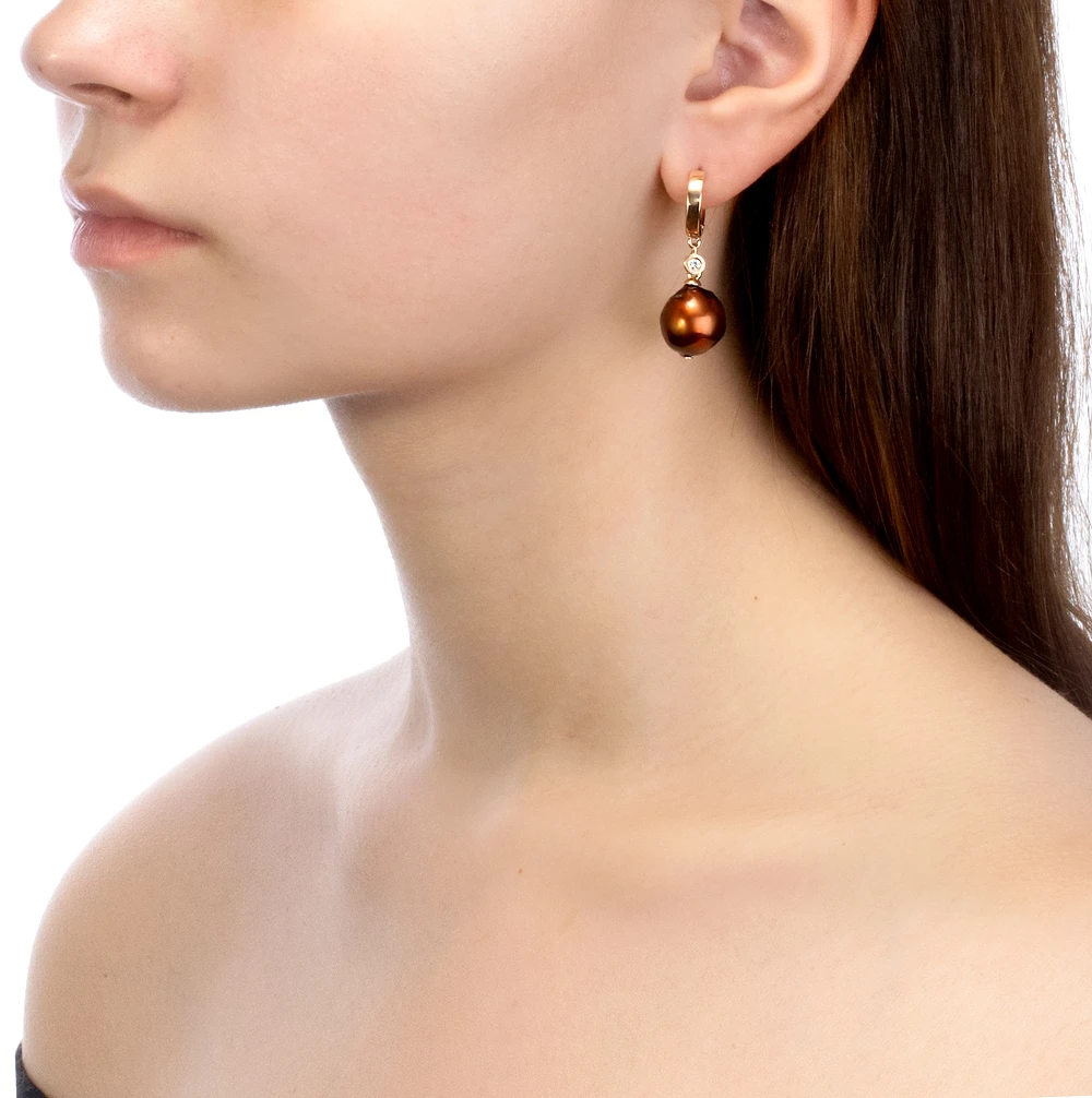 Серьги из серебра с шоколадными жемчужинами "Барокко" 13-16 мм, (6000)