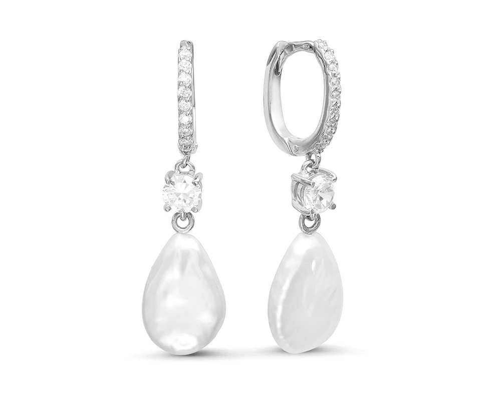 Серьги из серебра c белыми речными жемчужинами "Барокко" 14-18 мм, (4196)
