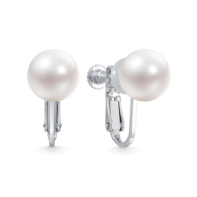 Серьги-клипсы из серебра с белыми речными жемчужинами 9,5-10 мм, (3871)