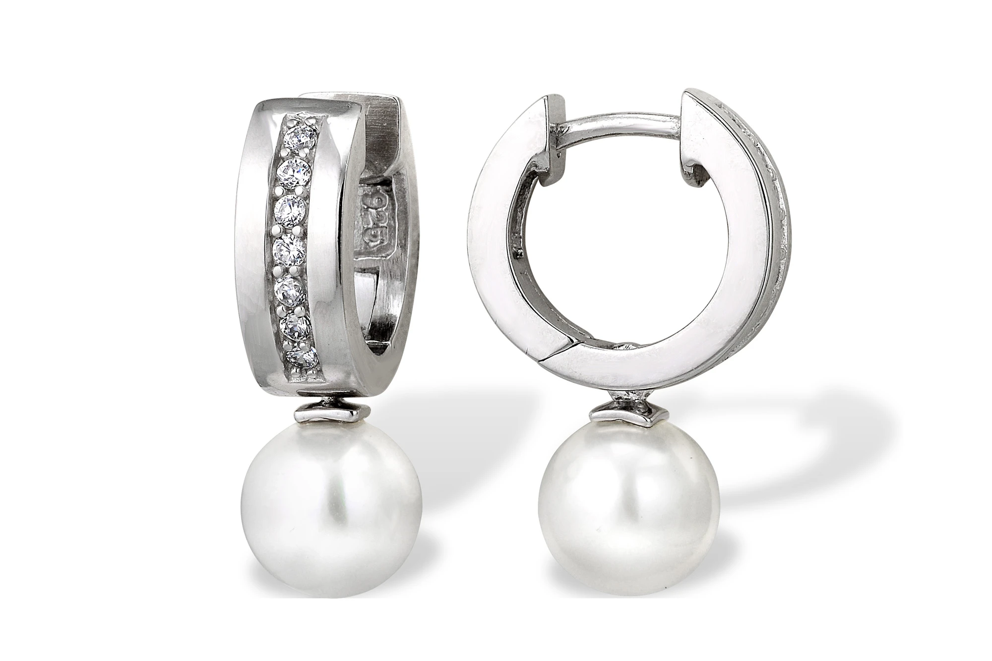 Серьги из серебра с белыми речными жемчужинами 8,5-9 мм, (2114)