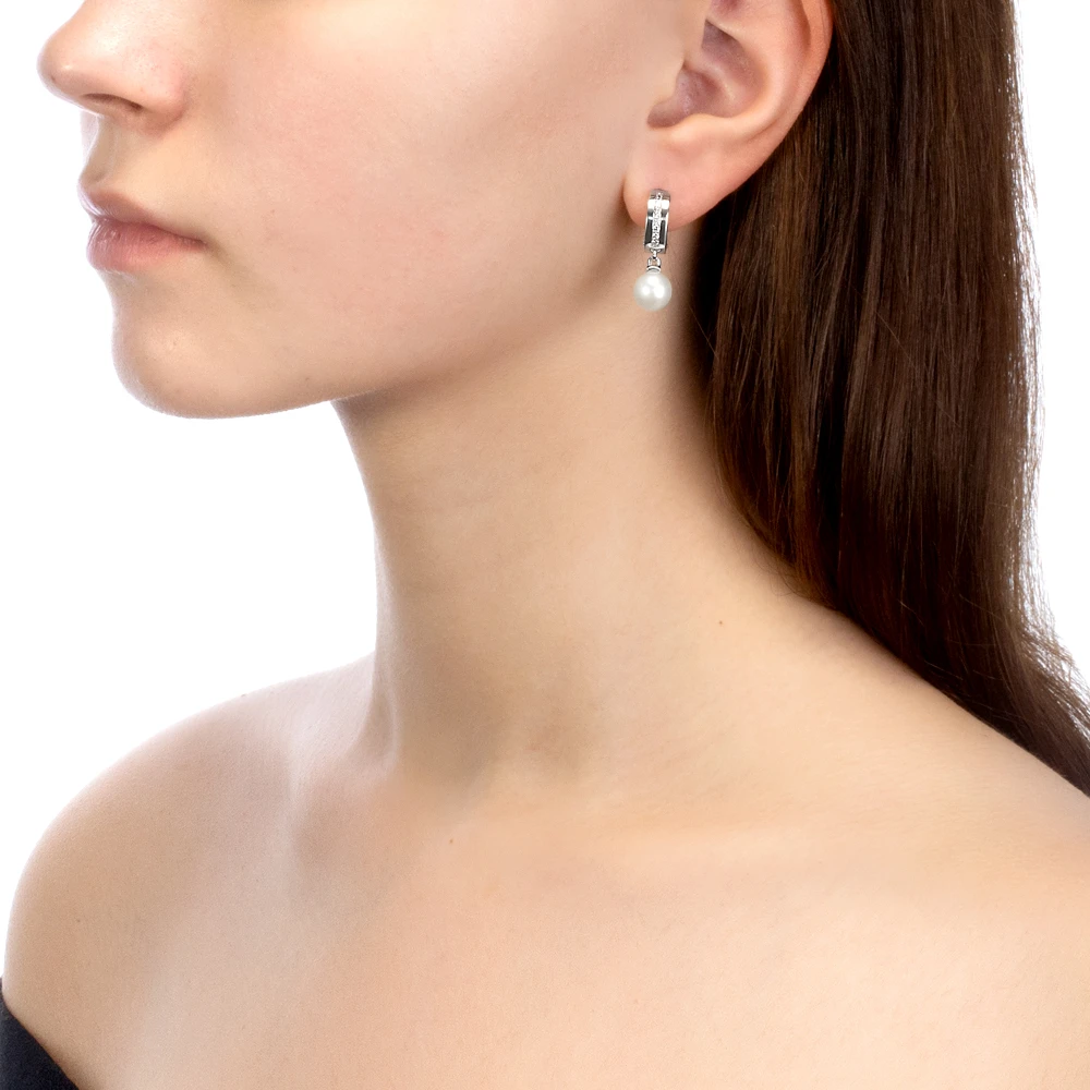 Серьги выполнены из серебра 925 пробы и украшены жемчужинами пресной воды. Качество жемчужин на серьгах наивысшее, жемчужины имеют очень яркий перламутровый блеск, поверхность без дефектов, форма жемчужин идеальная круглая.
