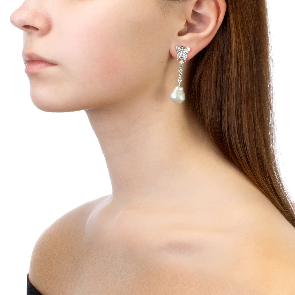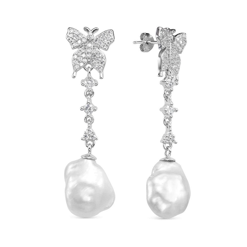 Эксклюзивные серьги выполнены из серебра 925 пробы, украшены белыми пресноводными жемчужинами "барокко". Качество жемчужин на серьгах наивысшее, жемчужины имеют очень яркий перламутровый блеск. Форма жемчужин на серьгах может отличаться от формы на фото, так как форма каждой барочной жемчужины уникальна и неповторима.
