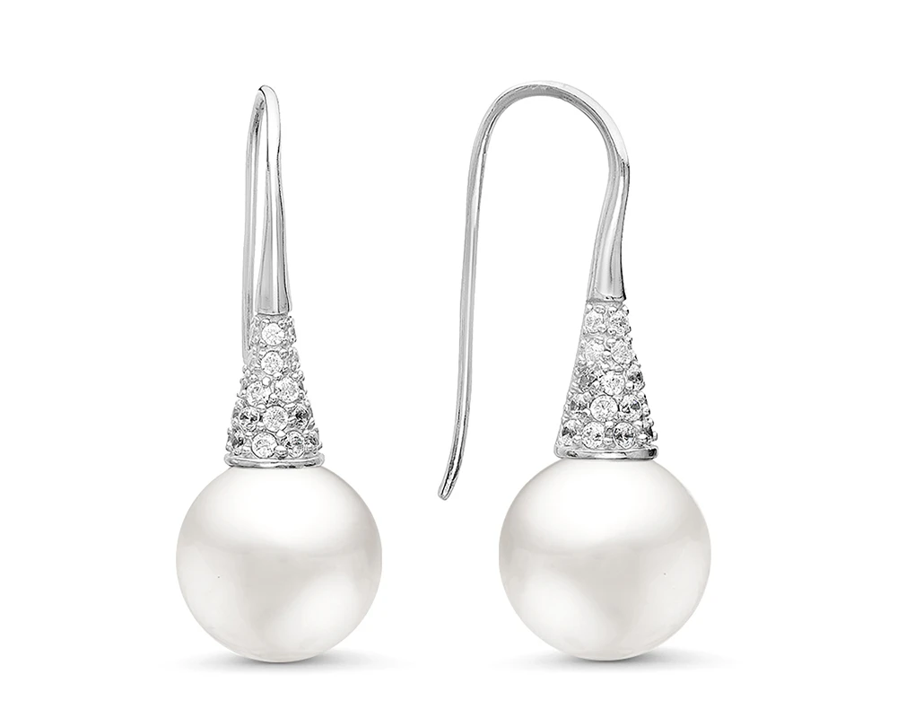Серьги из серебра с белыми речными жемчужинами 8,5-9 мм, (3839)