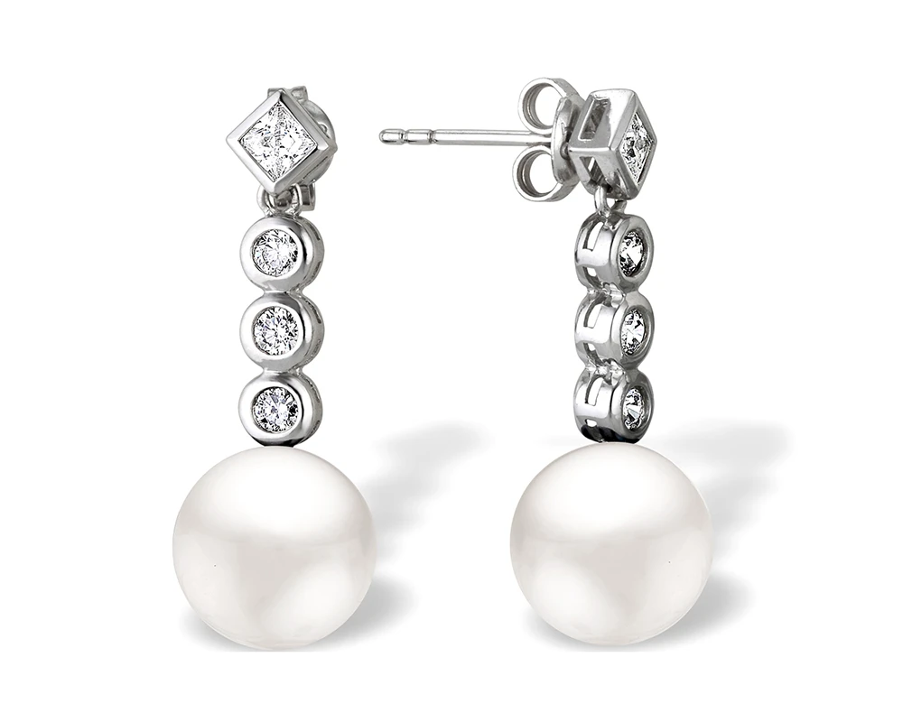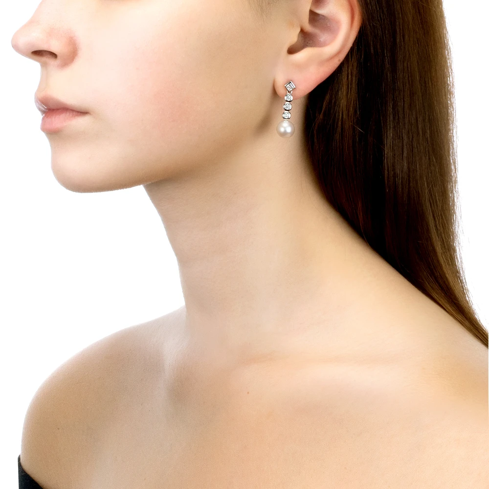Серьги выполнены из серебра 925 пробы и украшены жемчужинами пресной воды. Качество жемчужин на серьгах наивысшее, жемчужины имеют очень яркий перламутровый блеск, поверхность без дефектов, форма жемчужин идеальная круглая.