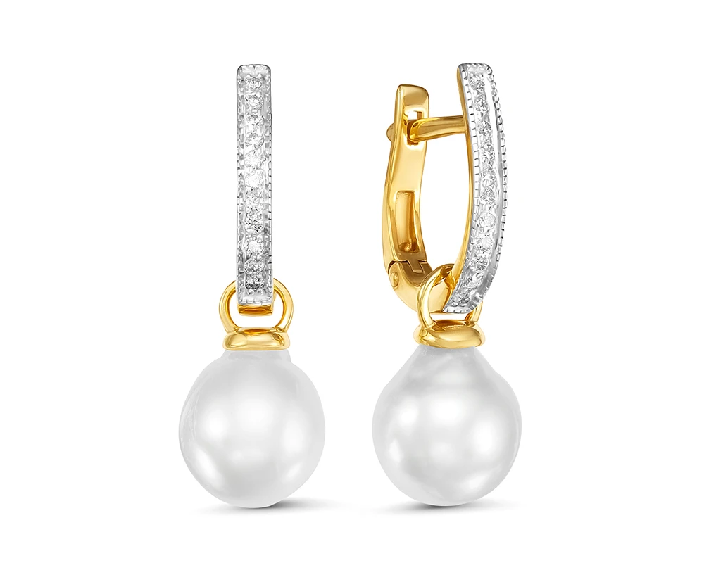 Серьги из серебра с белыми морскими Австралийскими жемчужинами 9,6-9,9 мм, (6100)