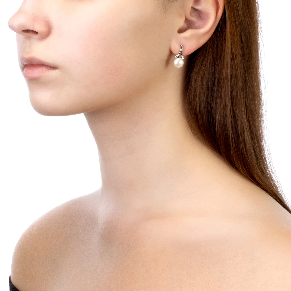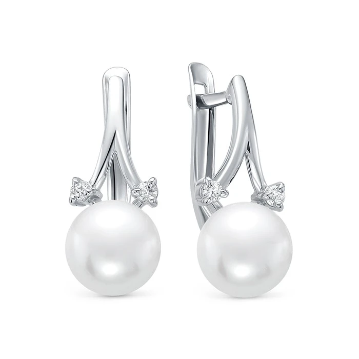 Серьги из серебра 925 пробы с белыми речными жемчужинами 8 мм, (2798)
