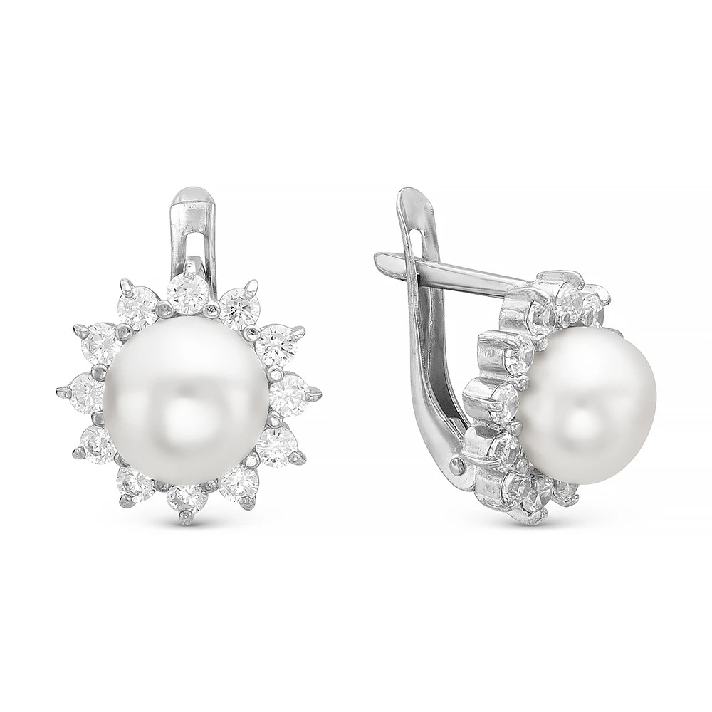 Серьги из серебра с белыми речными жемчужинами 7,5-8 мм, (4399)