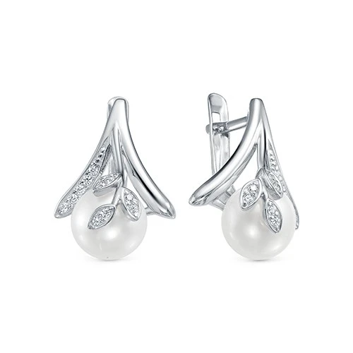 Серьги из серебра с белыми речными жемчужинами 9,5-10 мм, (2844)
