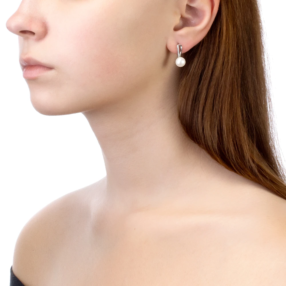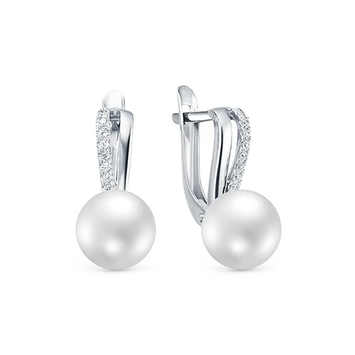 Серьги из серебра с белыми речными жемчужинами 8-8,5 мм, (4402)