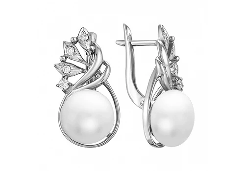 Серьги из серебра с белыми речными жемчужинами 9,5-10 мм, (3874)