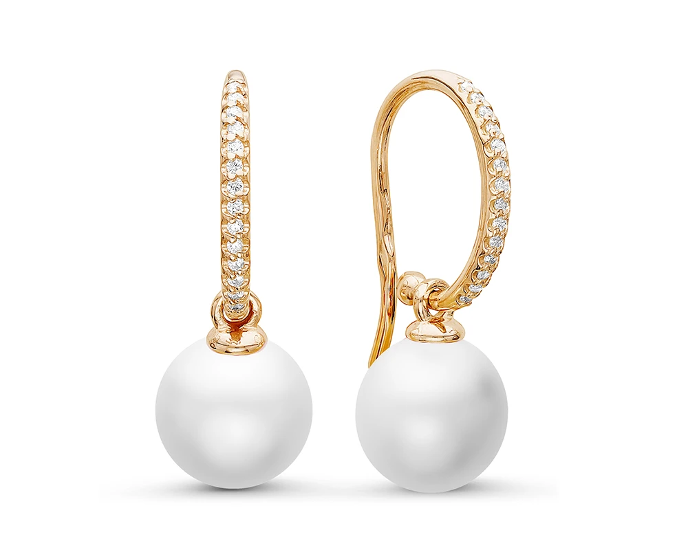 Серьги из серебра с белыми речными жемчужинами 9-9,5 мм, (1575)