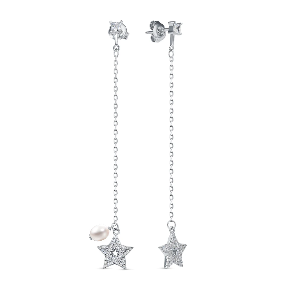 Серьги выполнены из серебра 925 пробы и украшены жемчужиной пресной воды. Качество жемчужины на серьгах наивысшее, жемчужина имеют очень яркий перламутровый блеск, поверхность без дефектов, форма жемчужин идеальная каплевидная.