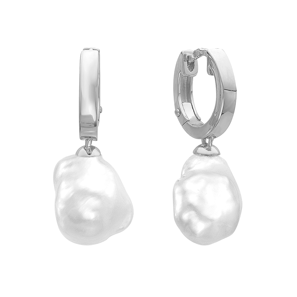 Серьги из серебра с белыми речными жемчужинами "Барокко" 12-14 мм, (7811)