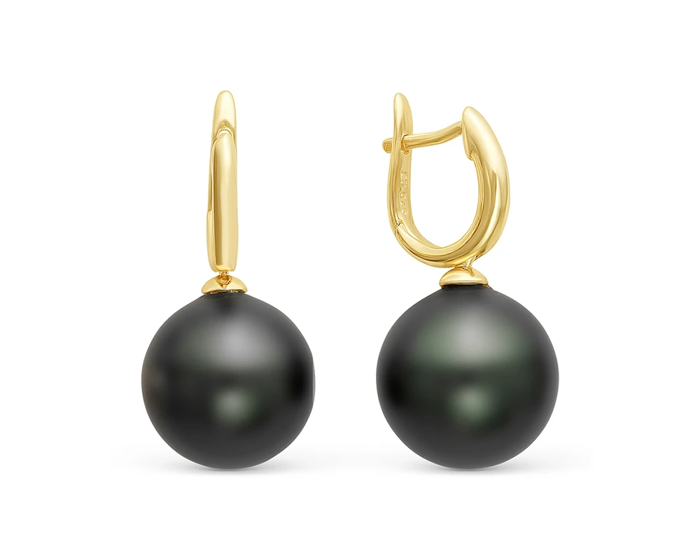 Серьги из серебра с черными жемчужинами "Майорика" 14 мм, (2690)