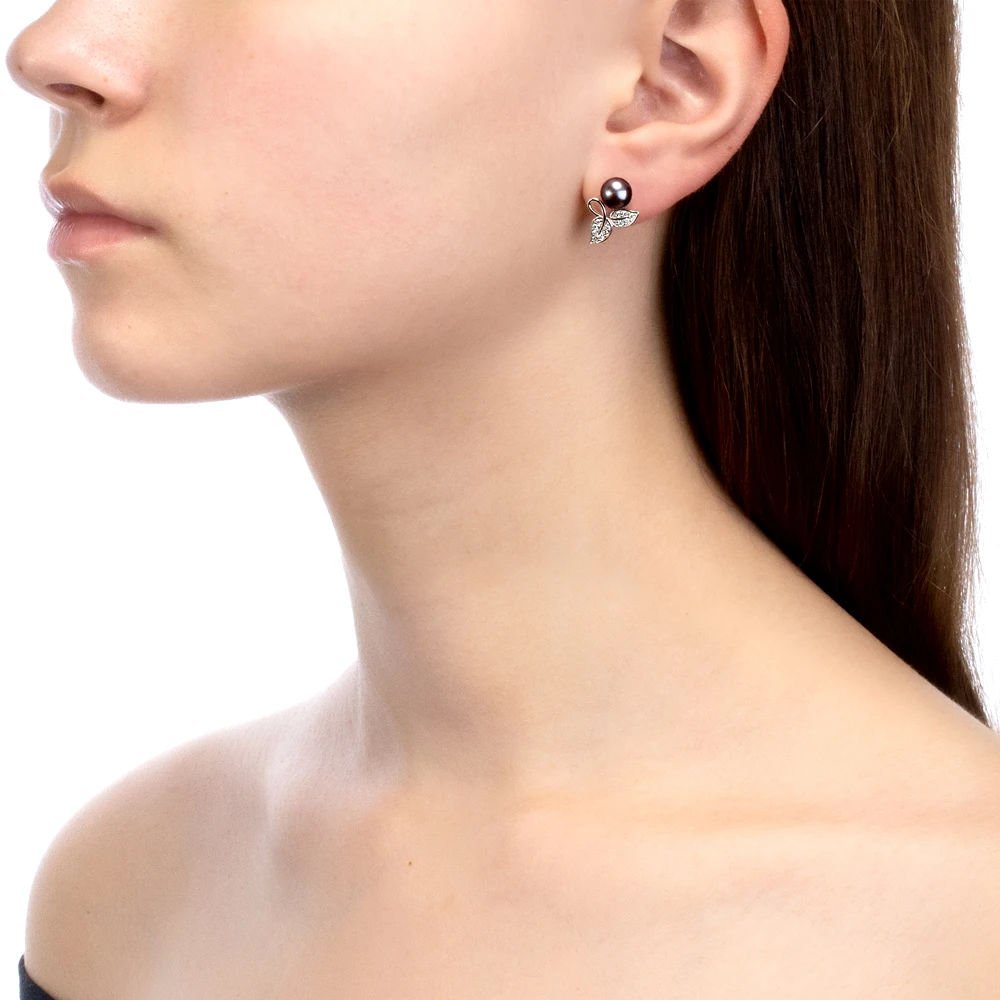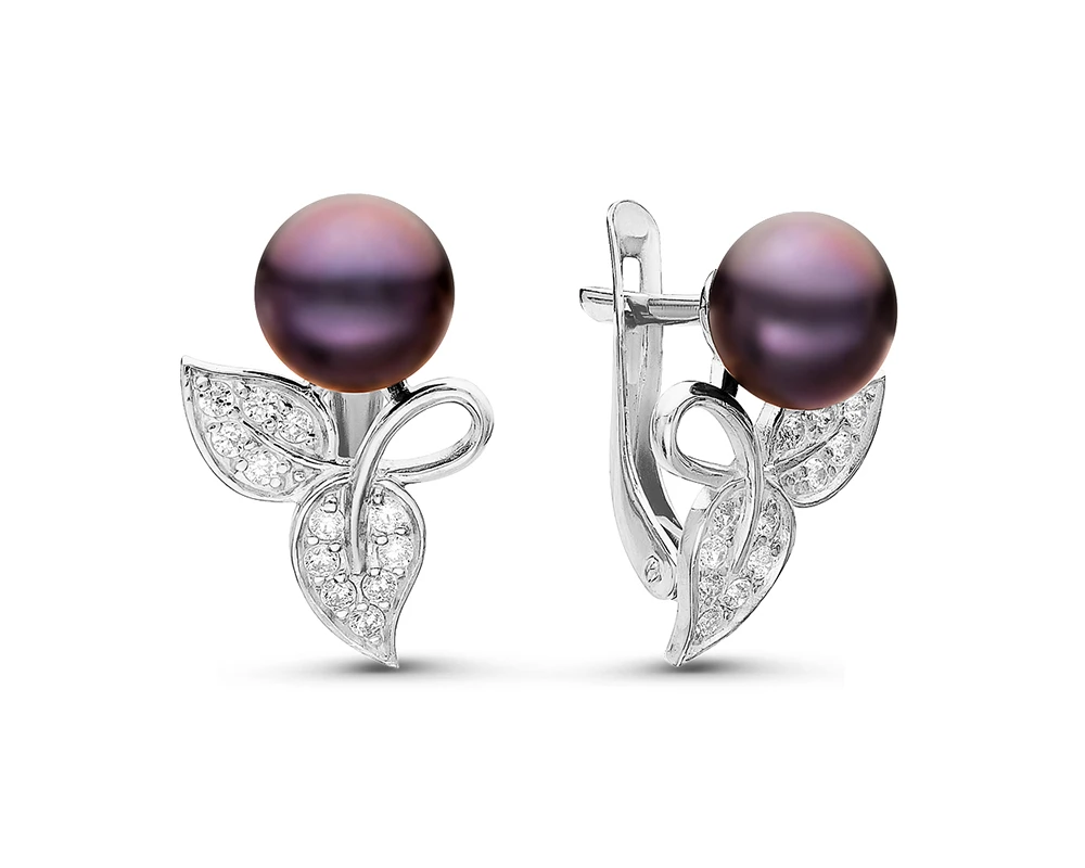 Серьги выполнены из серебра 925 пробы и украшены жемчужинами пресной воды. Качество жемчужин на серьгах наивысшее, жемчужины имеют очень яркий перламутровый блеск, поверхность без дефектов, форма жемчужин сплющенная (пуговица). В наличии есть серьги с жемчужинами различных оттенков черного цвета.