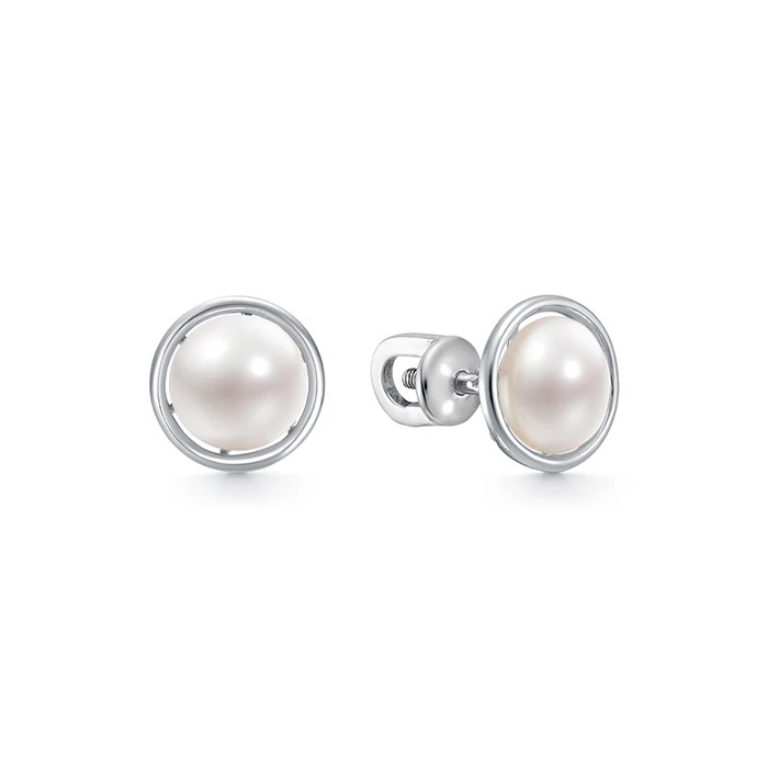 Серьги из серебра с белыми речными жемчужинами 7-7,5 мм, (4197)