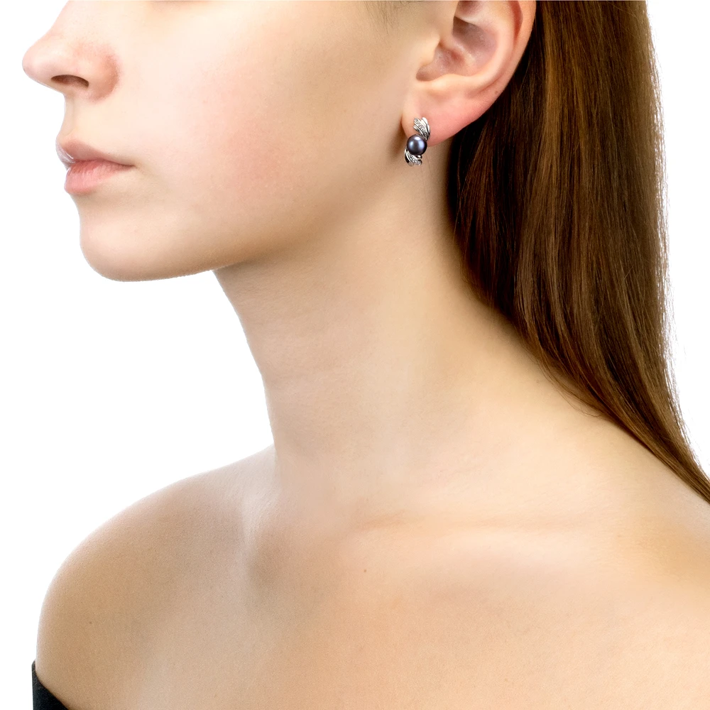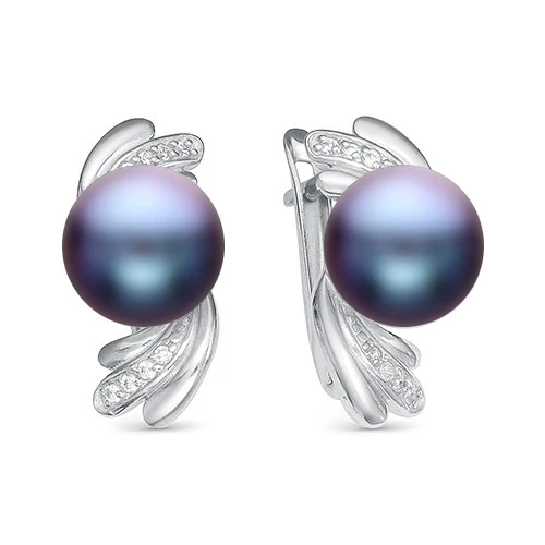 Серьги выполнены из серебра 925 пробы и украшены жемчужинами пресной воды. Качество жемчужин на серьгах наивысшее, жемчужины имеют очень яркий перламутровый блеск, поверхность без дефектов, форма жемчужин сплющенная (пуговица). В наличии есть серьги с жемчужинами различных оттенков черного цвета.
