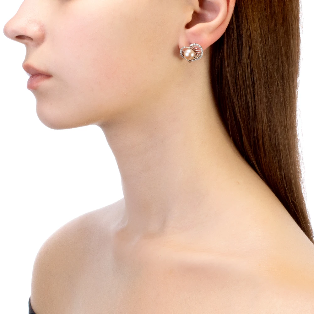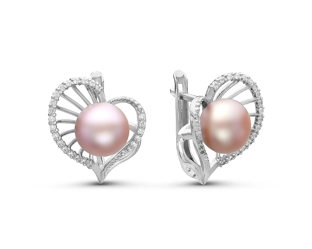 В наличии есть серьги с жемчужинами различных оттенков розового цвета.