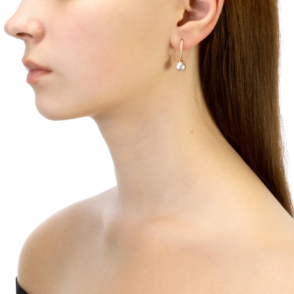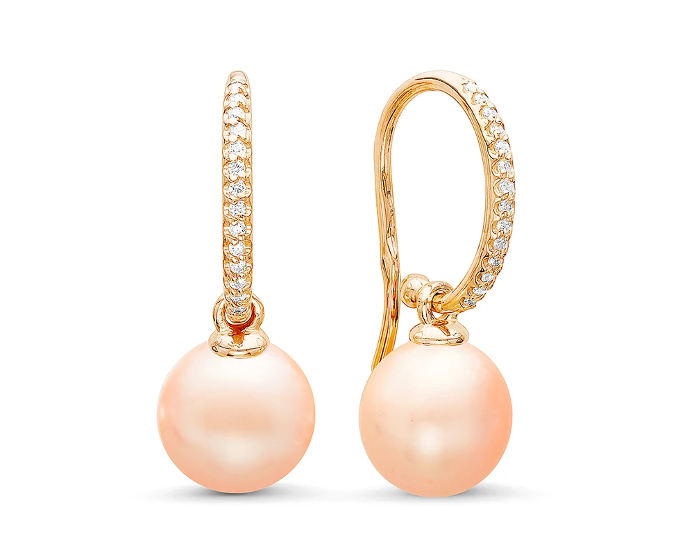 Серьги выполнены из серебра 925 пробы и украшены жемчужинами пресной воды. Качество жемчужин на серьгах наивысшее, жемчужины имеют очень яркий перламутровый блеск, поверхность без дефектов, форма жемчужин идеальная круглая. В наличии есть серьги с жемчужинами различных оттенков розового цвета.