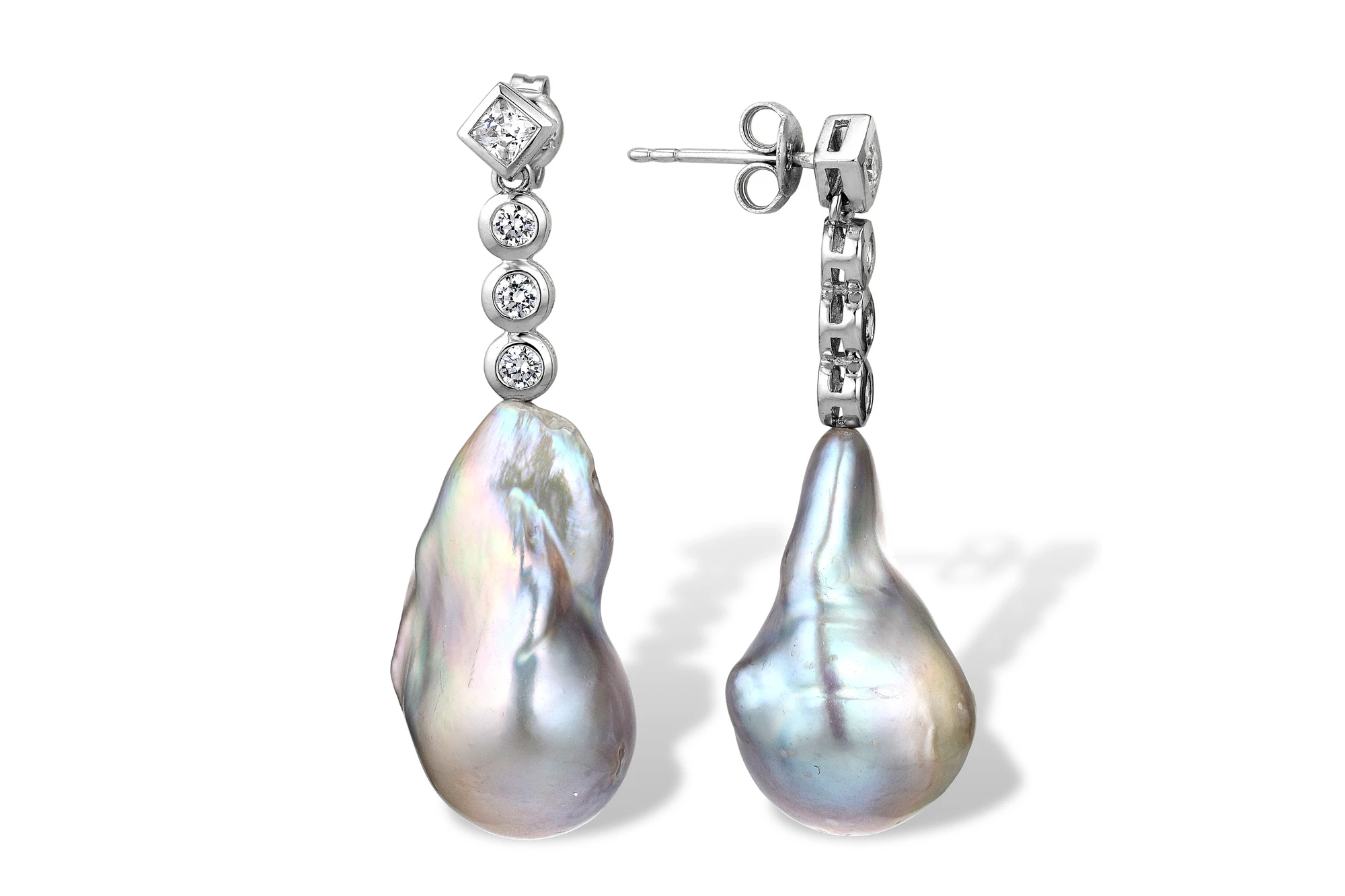 Эксклюзивные серьги выполнены из серебра 925 пробы, украшены серебристыми пресноводными жемчужинами "барокко". Качество жемчужин на серьгах наивысшее, жемчужины имеют очень яркий перламутровый блеск. Форма жемчужин на серьгах может отличаться от формы на фото, так как форма каждой барочной жемчужины уникальна и неповторима.