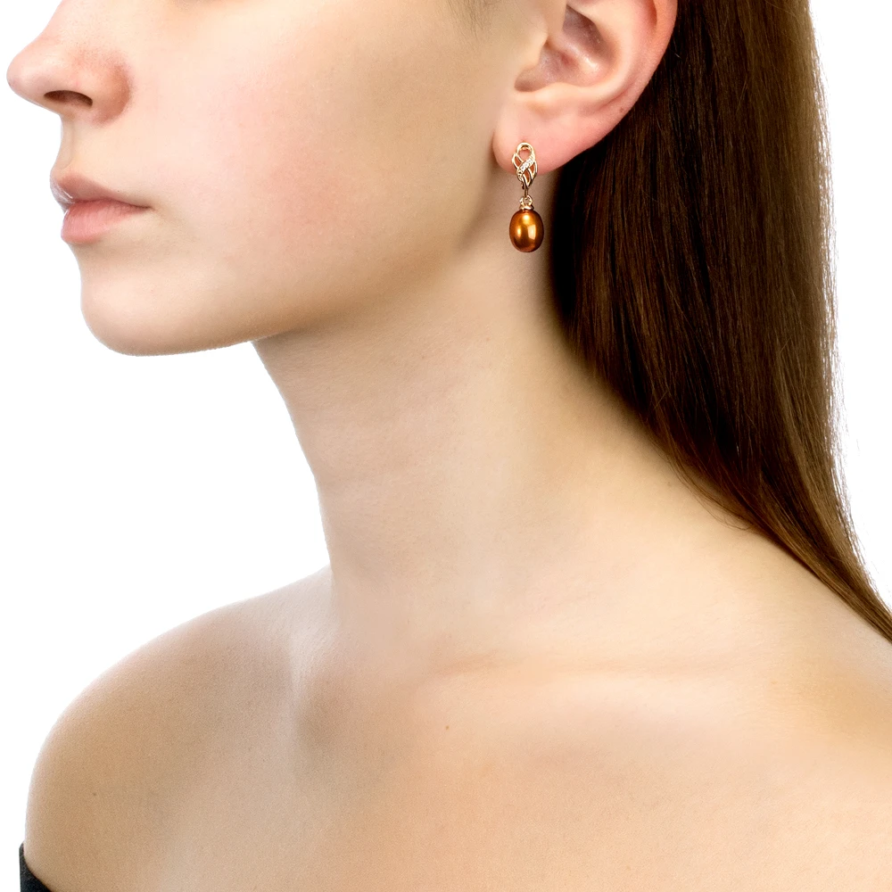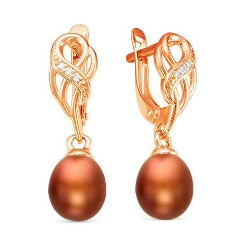 Серьги из серебра с шоколадными речными жемчужинами 8,5-9 мм, (7328)