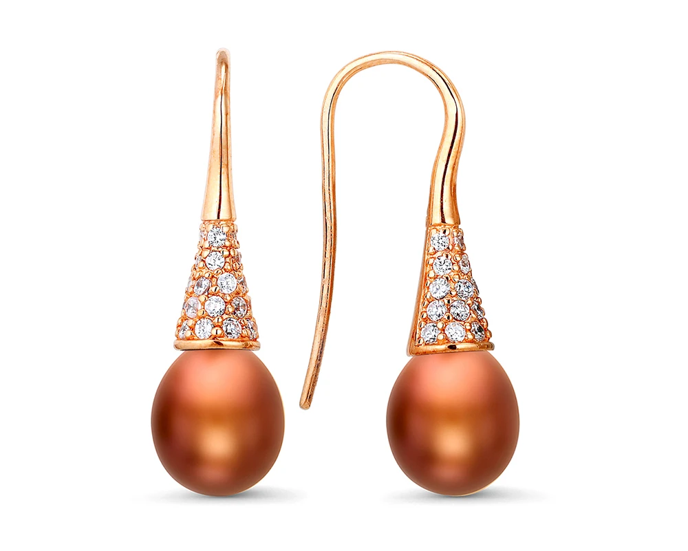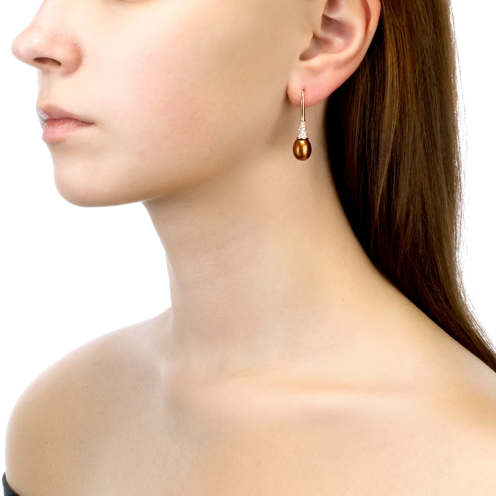 Серьги из серебра с шоколадными речными жемчужинами 8,5-9 мм, (3737)