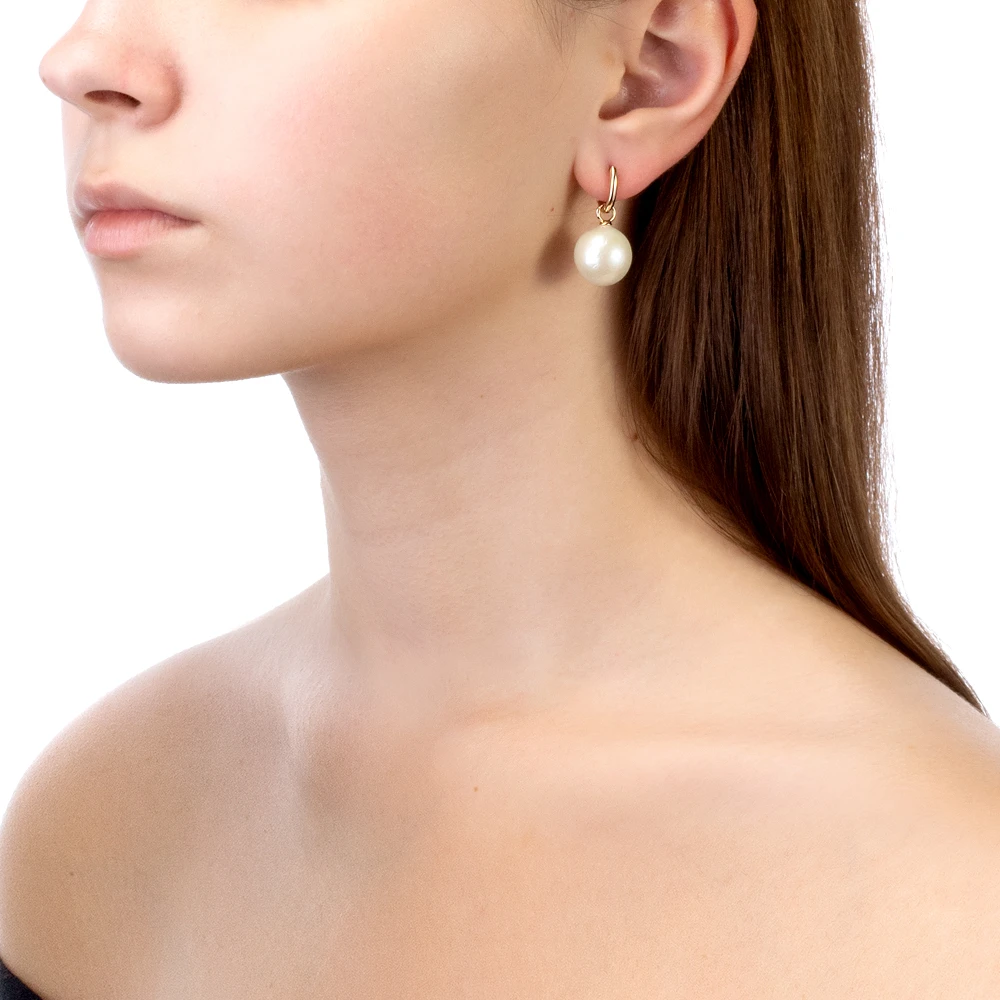 Серьги из серебра c белыми японскими речными жемчужинами 14-14,5 мм, (6200)