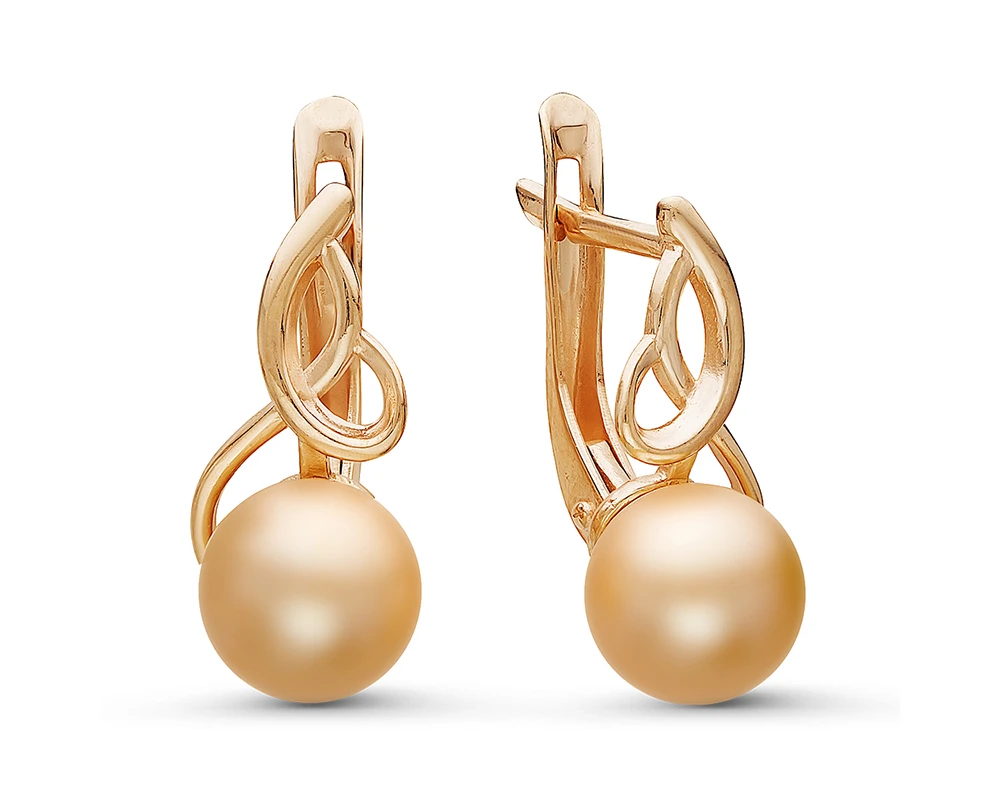 Серьги из серебра с золотистыми речными жемчужинами 7-7,5 мм, (3366)