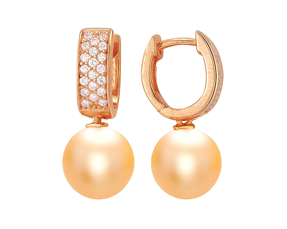 Серьги из серебра с золотистыми речными жемчужинами 9-9,5 мм, (3967)