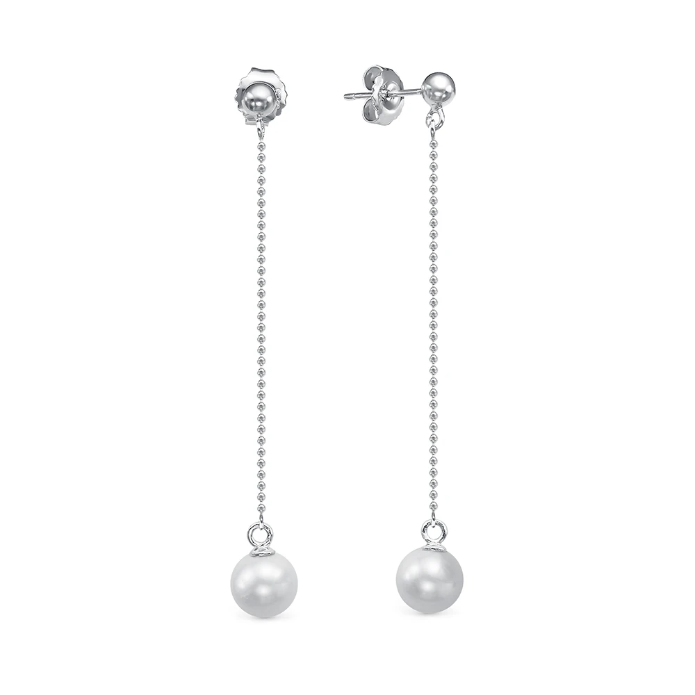 Серьги на цепочке из серебра c белыми речными жемчужинами 7,5-8 мм, (7296)