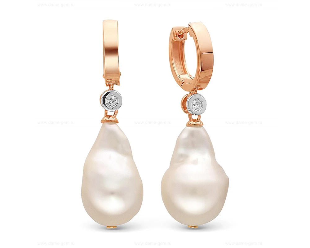 Серьги из пресноводного барочного жемчуга созданы нашими мастерами—дизайнерами. Нами использована серебряная основа 925 пробы c покрытием «красное золото». Длина серег — 4 см.