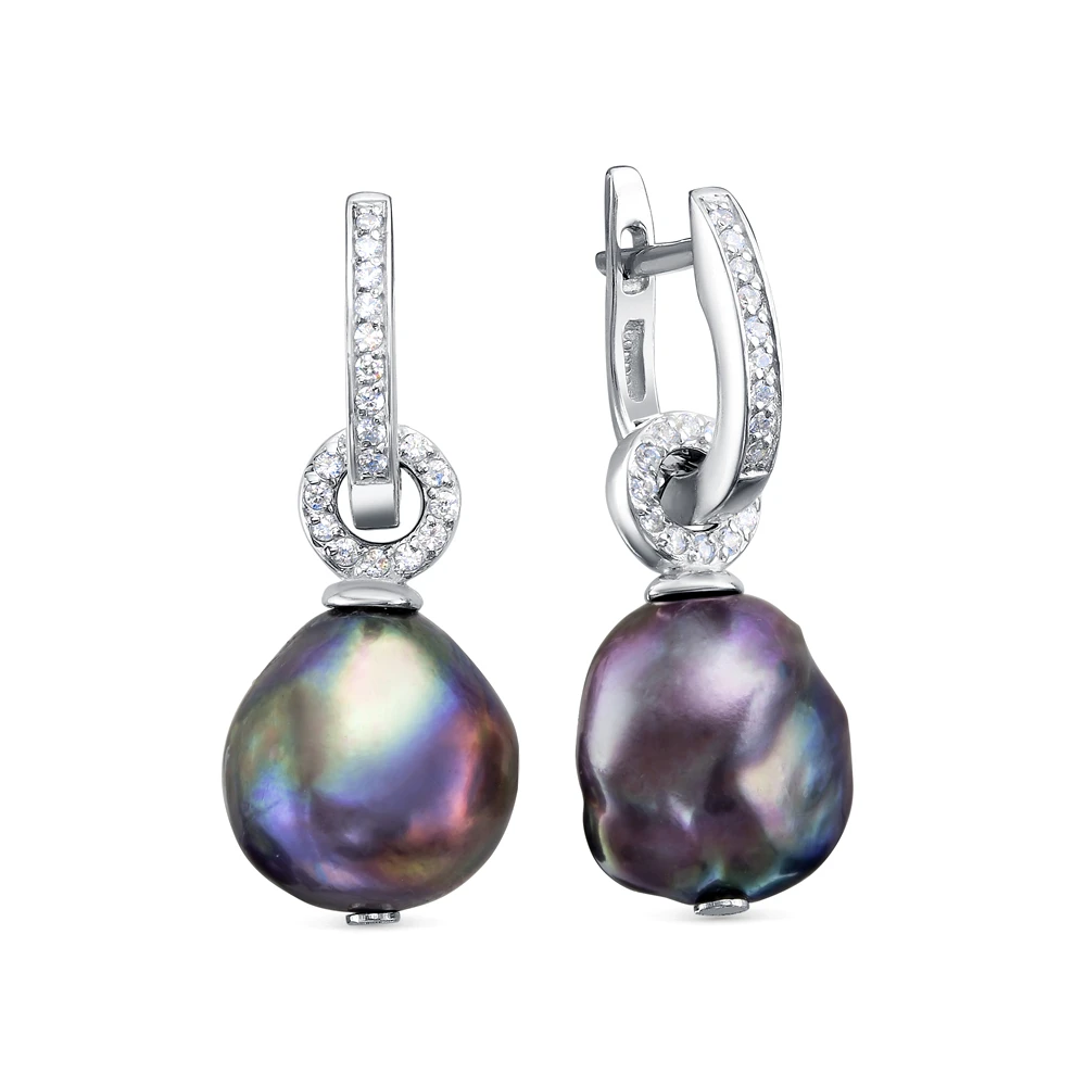 Серьги из серебра c черными речными жемчужинами "Барокко" 11-12 мм, (2946)