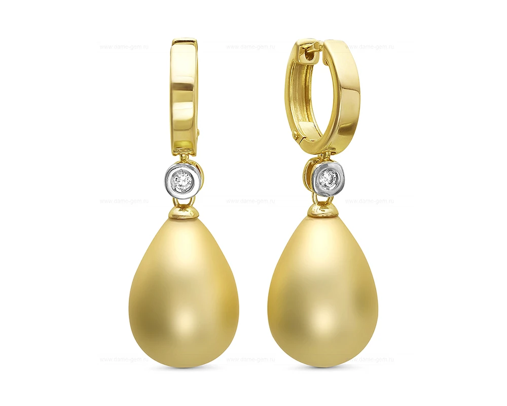 Серьги из серебра с золотистыми жемчужинами "Майорика" 16-20 мм, (2890)
