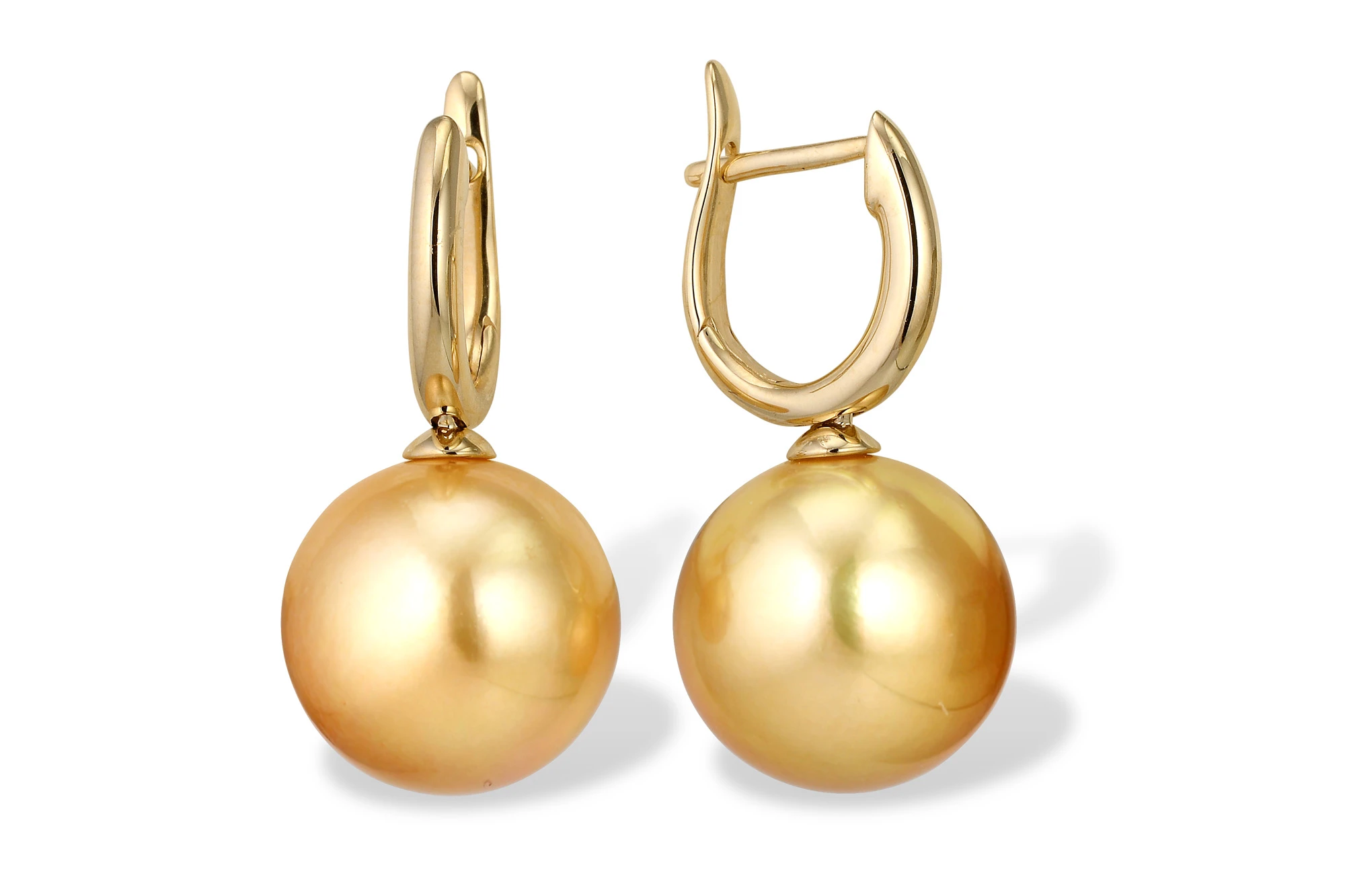Серьги из серебра с золотистыми жемчужинами "Майорика" 14 мм, (2294)