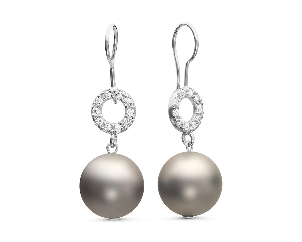 Серьги из серебра с серебристыми жемчужинами "Майорика" 12 мм, (3676)