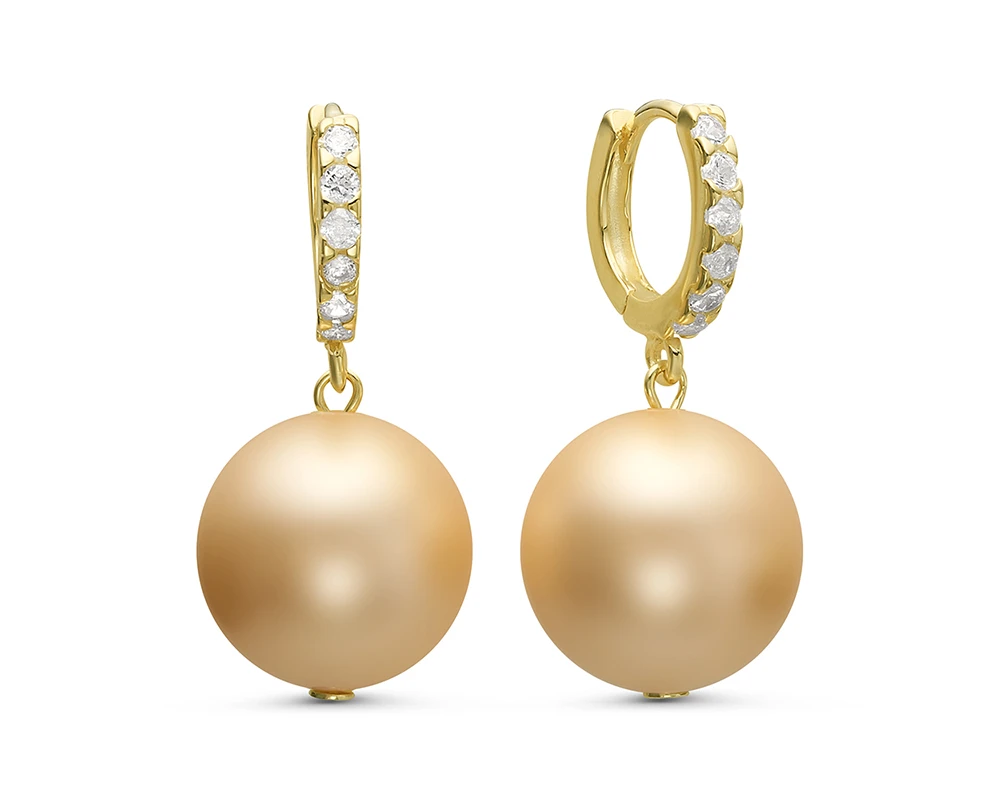 Серьги из серебра с золотистыми жемчужинами "Майорика" 12 мм, (3678)