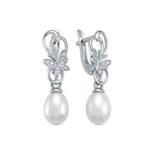 Серьги "Бабочки" из серебра с белыми речными жемчужинами 7,5-8 мм, (7274)