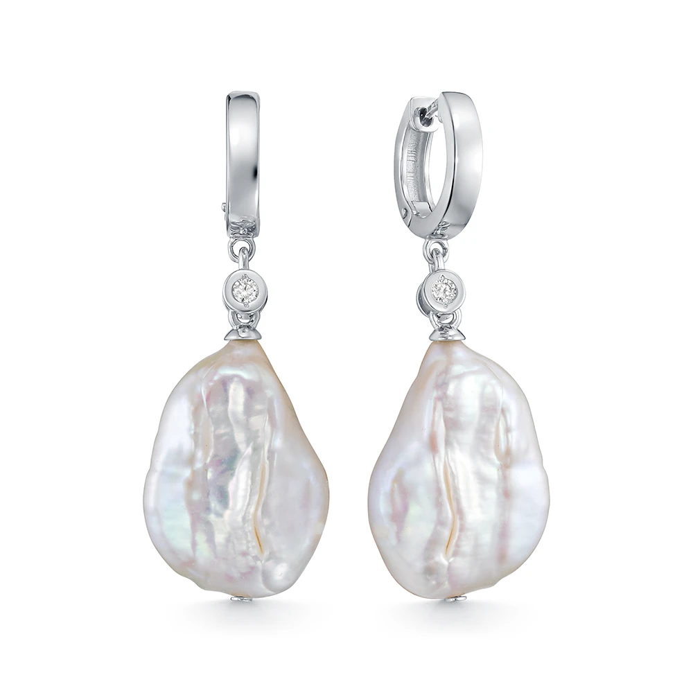 Серьги из серебра c белыми речными жемчужинами "Барокко" 16-20 мм, (7277)