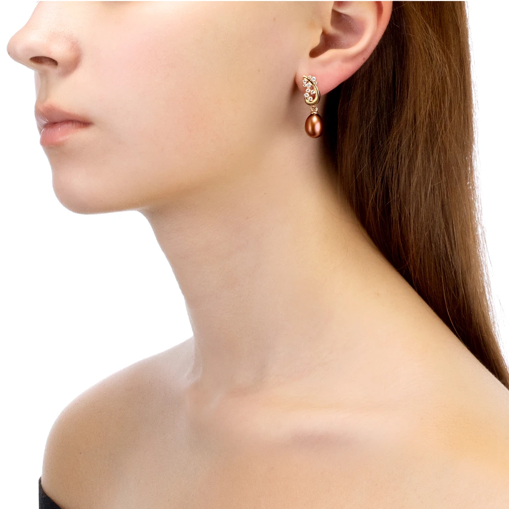Серьги из серебра 925 пробы украшены шоколадным пресноводным жемчугом. Блеск жемчужин очень яркий, качество жемчужин наивысшее. Длина серег - 3 см.
