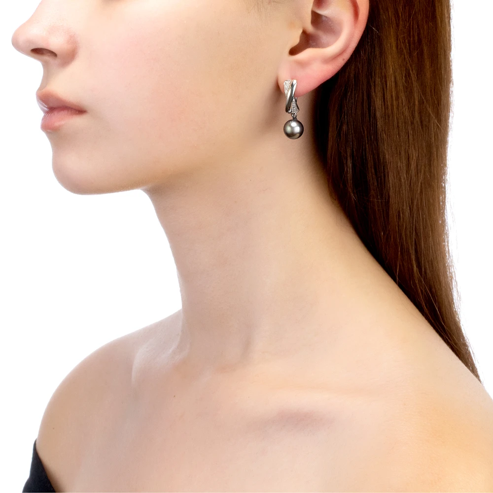 Серьги выполнены из серебра 925 пробы и украшены жемчужинами пресной воды. Качество жемчужин на серьгах наивысшее, жемчужины имеют очень яркий перламутровый блеск, поверхность без дефектов, форма жемчужин сплющенная (пуговица). В наличии есть серьги с жемчужинами различных оттенков черного цвета.