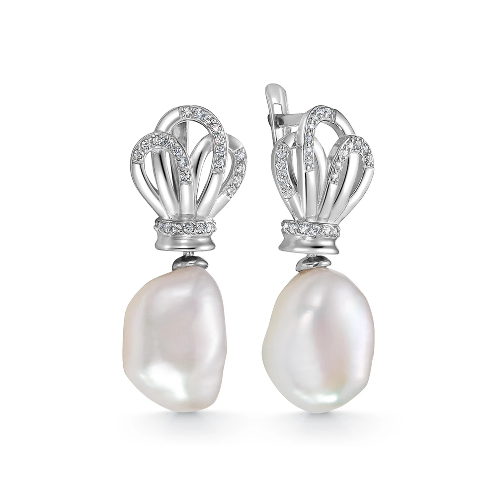 Эксклюзивные серьги выполнены из серебра 925 пробы, украшены белыми пресноводными жемчужинами "барокко". Качество жемчужин на серьгах наивысшее, жемчужины имеют очень яркий перламутровый блеск. Форма жемчужин на серьгах может отличаться от формы на фото, так как форма каждой барочной жемчужины уникальна и неповторима.